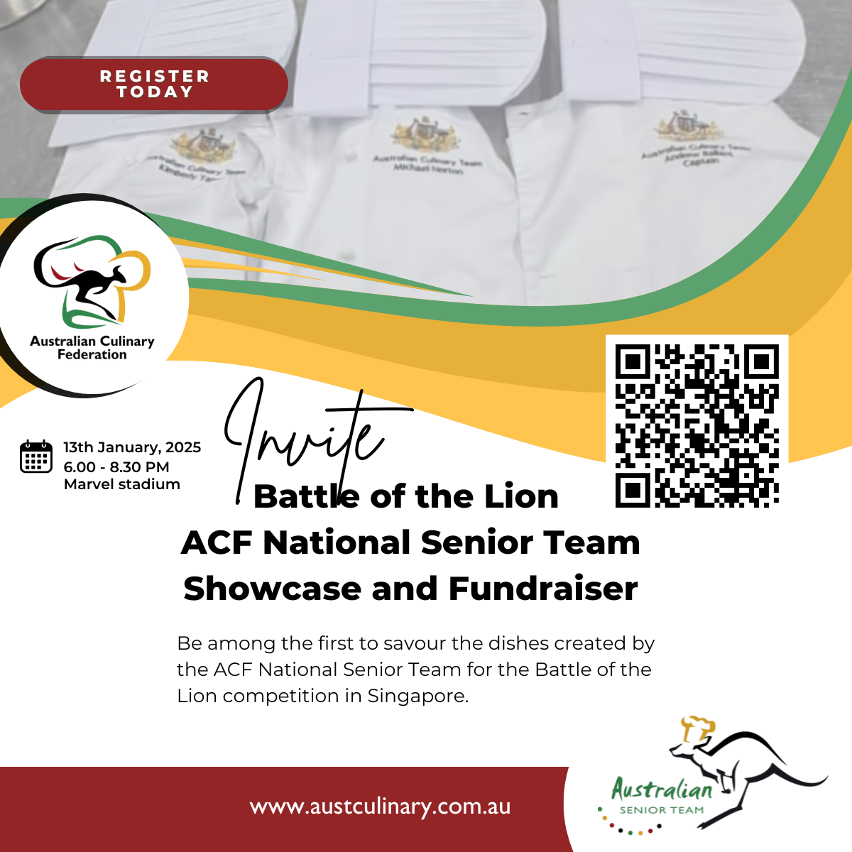 Be part of an exclusive evening as the ACF National Senior Team showcases the incredible dishes they’ll present at the Battle of the Lion competition in Singapore this April.